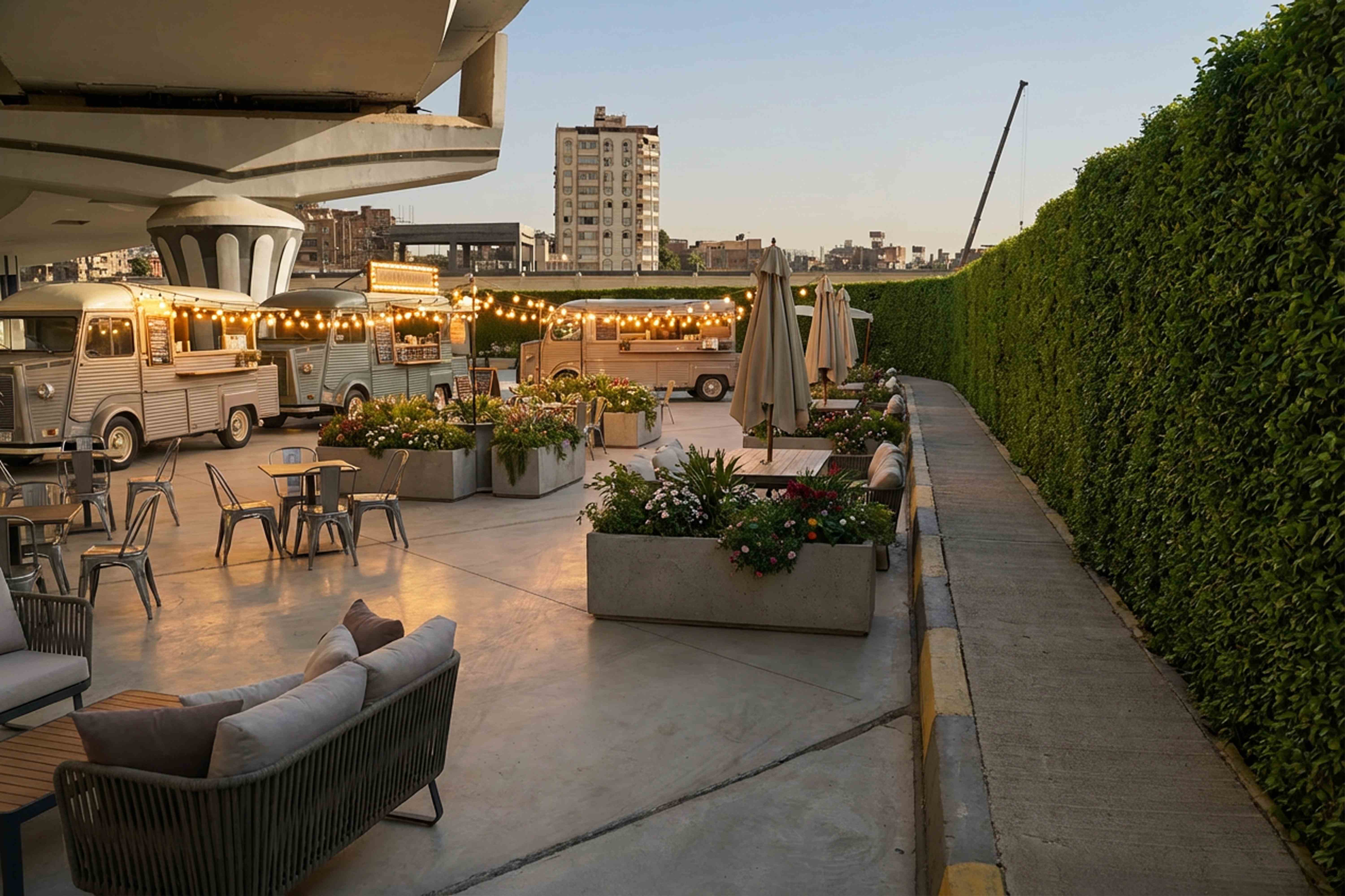 Rooftop dining with food trucks